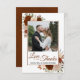Ces belles cartes de remerciement boho chic rustique mariage présentent votre photo dans entouré de rouille peinte à la main orange, pêche de corail, et des roses de couleur rouge brûlé, ainsi que des feuilles d'eucalyptus et le feuillage d'automne ou d'automne éparpillés autour. La légende dit : Amour et Merci, avec vos noms ci-dessous. L'arrière a de l'espace pour une note courte et une signature personnalisée. Simple et élégant, ce carte de remerciements est le moyen parfait de faire connaître à vos amis et à votre famille combien vous appréciez leur amour et leur soutien.