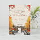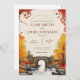 Mariage de automne Invitation présente des chutes d'aquarelle et un vieux pont en pierre surplombant une rivière et des chutes remplies de pierres.