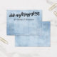 Voici un accessoire amusant à ramasser pour votre fiançailles ou douche conjointe : cartes de suggestion de jour de nuit sur lesquelles les invités peuvent écrire des notes personnelles à la mariée et au marié. Sur le devant, vous lisez "date night suggestions" dans une police de caractères élégante, audacieuse et moderne. En dessous, il y a un endroit pour vos noms. Tous les mots sont présentés en noir. Le recto et le dos de la carte étaient recouverts d'une texture grunge subtile et en mauvais état, dans un joli bleu. Le dos a été laissé sans mots, offrant un espace pour plus de notes personnelles écrites à la main que vos invités sont encouragés à fournir. N'hésitez pas à me contacter si vous avez des demandes spéciales ou avez besoin d'autres articles. Je suis également heureux de vous aider à personnaliser ces cartes si vous en avez besoin. // 89 // Conçu par Melody Watson pour Paper Muserie