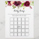 Ce jeu rustique de bingo bingo burgundy rousse est parfait pour un baby shower simple. Le design est composé de fleurs rose, rousse, rouge, bordeaux et bordeaux à aquarelle avec feuillage vert.