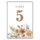 Prenez l'esprit de votre journée spéciale avec ces belles cartes de numéro de table de style boho. Elles présentent un superbe design floral de tons terre, ce qui en fait l'ajout parfait à n'importe quelle table mariage. Objets correspondants dans notre magasin Cava Party Design.