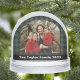 Capture your favorite holiday moment in this personalized snow globe featuring a green and black plaid base, your family name, and a cherished photo.