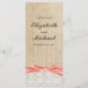 Rustic Burlap Lace Coral Programme de mariage au r