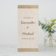 Un programme de mariage sur le thème de la campagne avec un design imprimé de burlap.
