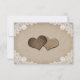 Cartes RSVP de mariage rustique vintages inspirées du burlap et de la dentelle. Personnalisez facilement ces cartes de réponse mariage campagnard rustique romantique avec des coeurs de burlap contre un burlap en détresse et arrière - plan en dentelle orné de lampes à cordes.