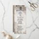 Donnez à vos invités l'ordre de votre mariage avec le Rustic Country Barn Wood Wedding Program décontracté mais élégant. Ce programme de cérémonie à l'allure d'un ranch détendu comprend une numériquement photo de ferme à tonalité sépia rehaussée de bois d'écorce patiné et éclaboussé.