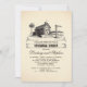 Dîner de répétition rustique vintage avec grange house - ferme et paysage rustique avec arbres, baril, bois et panneau de route en bois avec les initiales de la mariée et du marié avec la date mariage. Invitation parfait pour un dîner de répétition rustique dans la grange.