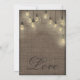 Rustic Country Hanging Edison Light Bulbs Lights Burlap Imprimer Invitations De Mariage. L'arrière - plan est un modèle de burlap imprimé foncé, pas un tissu de burlap réel. Les lumières sont suspendues au sommet de l'invitation. Elles sont idéales pour un pays rustique ou un mariage à thème vintage. Ajoutez simplement votre propre libellé de faire-part de mariage au modèle facile à changer. Éléments correspondants :