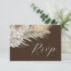 This elegant boho RSVP card will complete your wedding suite, featuring original watercolor artwork of beige pampas grass, off-white florals, and earthy palm leaves set against a dark brown background. The design blends modern sophistication with natural, botanical charm—perfect for rustic, bohemian, desert, or contemporary weddings. Easily customise with your reply details to create a cohesive and stylish addition to your invitation set.