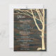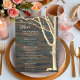 Menu Rustic Dark Wood Winter Tree Mariage. Le design est en bois foncé, un arbre en hiver et des flocons de neige. Le texte est dans un script moderne blanc. Vous pouvez facilement customiser tout le texte - personnalisez-le avec le nom de la mariée et du marié, la date du mariage et votre menu mariage. Ce menu mariage s'ajoute à d'autres éléments de la collection - vous pouvez trouver le lien sous ce menu.