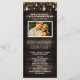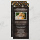 Rustic Fall Firefly Mason Jar programmes de mariage - présente un arrière - plan rustique en bois de grange avec l'érable, le chêne et d'autres feuilles dans les couleurs de l'automne — rouge, bordeaux, jaune, vert et orange avec des lumières clignotantes. Des jarres de Mason remplies de lumières ou de lucioles sont également ajoutées au design.