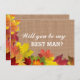 Serez-vous mon MEILLEUR HOMME ? Design unique pour un thème mariage de automne avec un beau feuillage d'automne sur un arrière - plan de burlap. Utilisez l'outil Customiser pour ajouter vos informations. Pour plus de papeterie mariage visitez, s'il vous plaît, mon Rustic Fall Leaves Burlap Mariage Collection. Besoin d'aide ? Cliquez sur le bouton Demander à ce concepteur ci-dessous.