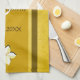 Flore d'or rustique © Sunny Mars Designs. Serviette de thé de cuisine en coton vintage rouille personnalisée avec bordures de ruban jaune, fleurs blanches modernes et vieux arrière - plan de papier parchemin. Ils font aussi un grand souvenir et les cadeaux parfaits pour les hôtesses de mariage tels que les servantes de mariée, les groomsmen, le meilleur homme, le matron ou la servante d'honneur, la fille aux fleurs, les porteurs de bague et les parents de la mariée et du marié, et font de grands cadeaux de jour de valentines ou cadeaux d'anniversaire.