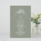 Illustration de l'étable avec arrière - plan couleur vert sauge et texte blanc.