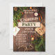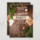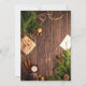 Accent bois avec l'invitation de la fête de la compagnie de verdure de Noël. Caractéristiques sprigs de sapin vert, cônes de pin, cadeau et enveloppe. Entièrement modifiable pour les détails de votre entreprise.