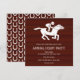 Gallop into the racing season with this stylish Annual Derby Party invitation. Featuring a rustic wood-panel background, a classic white jockey silhouette, and a playful horseshoe pattern on the reverse, this design perfectly captures the spirit of the track. Ideal for hosting a themed event with Mint Juleps and Derby attire, this customizable card ensures your guests save the date for the most exciting two minutes in sports.