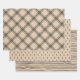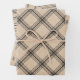 Cette collection de papier d'emballage présente des motifs de plaid, de grains de bois et d'arbres de Noël sur un arrière - plan kraft pour un look de vacances minimaliste.
