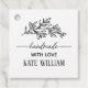 Simple fait à la main avec amour par un timbre d'entreprise avec une calligraphie magnifiquement scénarisée avec votre nom et enveloppé dans une feuille de laurier rustique.