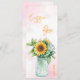 Carte du programme de mariage du Mason de tournesol rustique | Aquarelle florale. Ajoutez une touche rustique à votre cérémonie avec cette charmante carte d'info programme de mariage de jarre de tournesol. Doté d'une aquarelle peinte à la main et d'un bouquet de tournesol dans un bocal de maçon à la végétation luxuriante et aux fleurs sauvages doux, ce programme est parfait pour les mariages rustiques, de campagne, de grange ou d'été. Des polices de caractères dorées élégantes affichent les noms du couple et la date du mariage, créant une atmosphère chaleureuse et personnelle. Customisez facilement l'ordre de la cérémonie, la fête de la mariée et d'autres détails mariages sur le dos. Un beau souvenir pour vos invités ! Pour toute personnalisation supplémentaire, n'hésitez pas à me contacter à l'adresse mypaperlove2021@gmail.com