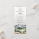 Cette belle aventure rustique commence le programme de mariage avec des aquarelles peintes paysage forestier de montagnes, parfait pour l'automne, l'automne, l'hiver ou la destination mariage. Personnalisez-le avec les détails de votre jour de mariage.