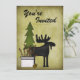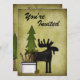 Personnalisé Rustic Mountain Country Silhouette Moose Birthday Party Invitation avec Arrière - plan vert.