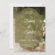 Celebrate your love story with this elegant and rustic olive green wedding invitation. Featuring a beautiful arched photo overlay, this design allows you to showcase your favorite engagement photo in a timeless, botanical-inspired frame.