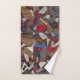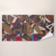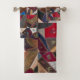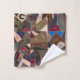 This striking and colorful bath towel set (bath towel, hand towel, facecloth) features a beautiful rustic patchwork crazy quilt design. Enjoy the intricate details - including horse, horseshoe, butterfly, wheat, flower and cat motifs. The dominant color tones are shades of burgundy/wine, blue, brown and taupe. Vintage antique quilt patterns are currently very trendy in home décor and pair well with the modern farmhouse look. These towels will elevate your style and become an attractive focal point in your bathroom. Elegant and unique, these towels are great for a guest bathroom, at home or at the cabin, country home or lake house.