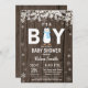 Rustic Penguin Winter Boy Baby shower Invitation. Flocon de neige blanc. Bébé son froid à l'invitation du Baby shower. Invitation Baby shower Garçon. Invitation Baby shower de vacances d'hiver. Arrière - plan rustique en bois. Country Vintage Retro Grange. Pour plus de personnalisation, cliquez sur le bouton "Customiser" et utilisez notre outil de conception pour modifier ce modèle.