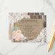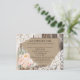Bouquet de fleurs de pivoine sur motif, dentelle de chantilly blanc et arrière - plan en bois de grange carte d'hébergement mariage rustique .