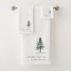 Serviette rustique idéale pour un hôtel, motel, bed and breakfast, avec un unique pin aquarelle, sur un arrière - plan blanc. Personnalisez avec votre nom d'entreprise.