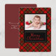 Un arrière - plan confortable en plaid rouge prépare le terrain pour un Noël de campagne ludique pour la famille et les amis. Modifiez et personnalisez cette carte avec une photo de votre famille avec un arrière - plan à motif rouge, vert et noir chaud.