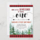 Rustic Red Plaid Boy Invitation d'anniversaire. Avec une forêt verte et un style rustique, cette invitation à la bûcheron est parfaite pour la première invitation d'anniversaire.