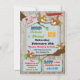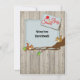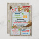 Super fun rustique Baby shower Bois Couples pour des invitations jumelles avec de mignons écureuils, des branches avec des feuilles verts, du papier vintage avec une grande typographie et un petit bétail rouge sur un arrière - plan rustique en planches de bois. Chambre à l'arrière pour plus d'informations sur la fête. Bon pour garçon ou fille jumeaux ou douche neutre bébé. Illustration tirée à la main par McBooboo.