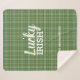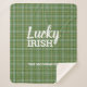 Décorez votre maison pour mars avec cette Rustique St Patrick's Day Green Plaid Nom de famille Sherpa Blanket. Il s'agit d'une ferme rustique conçue avec un arrière - plan vert plaid et la citation drôle "irlandais chanceux" en écriture calligraphie blanche sur le centre. Le nom de famille se trouve au centre inférieur. Vous pouvez choisir votre texte personnalisé ou supprimer si vous le souhaitez. Cliquez sur l'option Personnaliser plus et entrez nom, texte personnalisé ou supprimer.