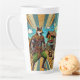 Profitez de votre latte préféré dans le style avec la tasse "Rustic Superdog", avec un Chien indien Pariah dans une tenue rustique superhéros avec des tons terreux et des accents métalliques. Le design reflète l'esprit fier et résilient de la race indigène de l'Inde, face à une scène de village de style comique qui déborde d'effets pop colorés. Parfait pour les amateurs de café ou de thé qui apprécient l'art audacieux et les histoires uniques, cette tasse en latte combine fonctionnalité et charme culturel. Un grand cadeau pour les amoureux de les chiens ou tous ceux qui aiment une touche de créativité dans leur routine matinale.