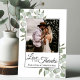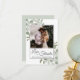 Ces belles cartes de remerciement mariages présentent votre photo entourée de sprigs d'aquarelle peints à la main de feuilles d'eucalyptus et de feuillage dans des tons de menthe, de mousse et de vert sauge. La légende dit : Amour et Merci, avec vos noms ci-dessous. Simple, rustique et élégant, ce carte de remerciements est le moyen idéal pour faire connaître à vos amis et à votre famille combien vous appréciez leur amour et leur soutien.