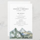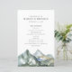 Complétez votre papeterie "jour de" mariage avec un programme de cérémonie magnifique, avec des montagnes d'aquarelle et typographie grise chaude. Customisez l'envers pour lister les membres de votre mariage.