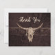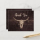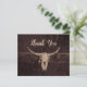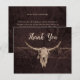 Ce carte de remerciements à petit budget présente une texture marron rustique taureau crâne de vache de l'ouest du pays rodéo cowboy thème mariage. Style maison de ferme, vieux sauvage ouest vintage antique. Cool, tendance, design moderne et customisé d'animaux de ferme. Copyright de l'image Marg Seregelyi Photography.