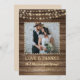 Votre photo mariage est accentuée avec un arrière - plan rustique, country, marron, patiné en planches de bois et lumières douces jaune lueur, ainsi que le titre de LOVE & MERCI et votre date mariage dans un pays occidental imprimé à la main police et votre nom dans une police de script de brosse rugueuse. Le dos offre un endroit pour taper un message de remerciement générique ou vous pouvez supprimer l'exemple de texte pour laisser la zone vide pour des notes personnelles manuscrites de remerciement. CONSEIL PHOTOGRAPHIQUE : Pour obtenir les meilleurs résultats, choisissez une photo avec le sujet au milieu et/ou pré-recadrez-la à une forme carré AVANT de télécharger et elle remplira parfaitement l'espace photo. Contactez le concepteur si vous souhaitez modifier cette conception ou coordonner des éléments.