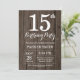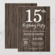 Rustique 15ème anniversaire Invitation. Arrière - plan rustique en bois. Anniversaire vintage du Retro. Anniversaire enfant. Invitation Anniversaire garçon ou fille. 13ème 15ème 16ème 18ème 20ème 21ème 30ème 40ème 50ème 60ème 70ème 80ème 90ème 100ème, Tout âge. Pour plus de personnalisation, cliquez sur le bouton "Customiser" et utilisez notre outil de conception pour modifier ce modèle.