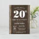 Rustic 20th Birthday Invitation avec Rustic Wood Arrière - plan. Pays vintage rétro. Anniversaire adulte. Hommes ou Femmes Anniversaire. Enfants Garçon ou fille Ado Anniversaire adolescent Invitation . 13ème 15ème 16ème 18ème 20ème 21ème 30ème 40ème 50ème 60ème 70ème 80ème 90ème 100ème. N'Importe Quel Âge. Pour plus de personnalisation, cliquez sur le bouton "Customiser" et utilisez notre outil de conception pour modifier ce modèle.