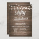 Rustic 50th Birthday Invitation avec String Lights Arrière - plan en bois. Fête d'anniversaire de la femme. Cinquante et fabuleux. N'importe quel âge. Pour plus de personnalisation, cliquez sur le bouton "Customiser" et utilisez notre outil de conception pour modifier ce modèle.