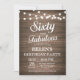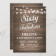 Rustic 60e anniversaire Invitation avec String Lights Arrière - plan en bois. Fête d'anniversaire de la femme. Soixante et fabuleux. N'importe quel âge. Pour plus de personnalisation, cliquez sur le bouton "Customiser" et utilisez notre outil de conception pour modifier ce modèle.