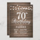 Rustic 70th Birthday Invitation avec String Lights Arrière - plan en bois. 16ème 18ème 21ème 30ème 40ème 60ème 70ème 80ème 90ème 100ème, Tout âge. Pour plus de personnalisation, cliquez sur le bouton "Customiser" et utilisez notre outil de conception pour modifier ce modèle.