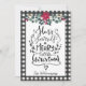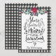 Rustic Farmhouse Buffalo noir et blanc Plaid Farmhouse Style Carte de Noël avec la verdure de Noël & poinsettia. Salutation de style manuscrit qui dit "Ayez-vous un joyeux petit Noël avec votre nom de famille ou nom d'entreprise.