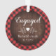 Cette décoration de Noël en souvenir de fiançailles de mariage présente un espace pour votre texte sur un fond carreauté rouge et noir de style buffalo et en bois, agrémenté de branches et d'un cœur. La collection de produits coordonnés est disponible dans notre boutique, zazzle.com/store/doodlelulu. Contactez-nous si vous avez besoin de cette conception appliquée à un produit spécifique pour créer votre propre article ou cadeau unique assorti ! Merci beaucoup d'avoir consulté une création DoodleLulu par 2 june bugs !