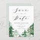 Annoncez votre date de mariage avec cette personnalisable enregistrer la carte à plat date. Il comprend des aquarelles, un script élégant et une typographie simple. Personnalisez cette forêt enregistrez l'annonce de date en ajoutant les détails de votre mariage. Ce bois à l'exception de la carte datant est parfait pour les mariages de printemps et les mariages d'hiver.