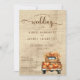 Cette invitation présente un design rustique avec un beau camion rempli de fleurs d'automne. L'invitation est faite de carton de haute qualité et est livré avec une enveloppe correspondante. Il fera une impression durable sur vos invités. Les initiales monographiques du couple sont à l'arrière.