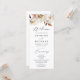 Programme de mariage floral d'automne rustique avec une bordure supérieure de fleurs de chute d'aquarelle et feuillage dans les tons d'ivoire, crème, marron et orange. Le bouquet floral d'automne est complété par un script de calligraphie moderne. Personnalisez le devant du programme de mariage floral boho d'automne avec vos noms, la date et l'emplacement du mariage, et l'ordre de la cérémonie. Le programme inverse pour afficher une liste de votre mariage. Conçu pour coordonner avec notre collection Rustique de mariages floraux d'automne.