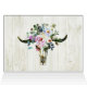 Une couronne bohémienne rustique et un crâne de vache longhorn sur des planches de bois blanchies à la chaux carte de remerciements arrière - plan.